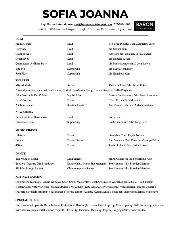 Headshots + Resumés Headshots Download Headshots Resumés Download Acting Resumé PDF. Download Dance Resumé PDF.